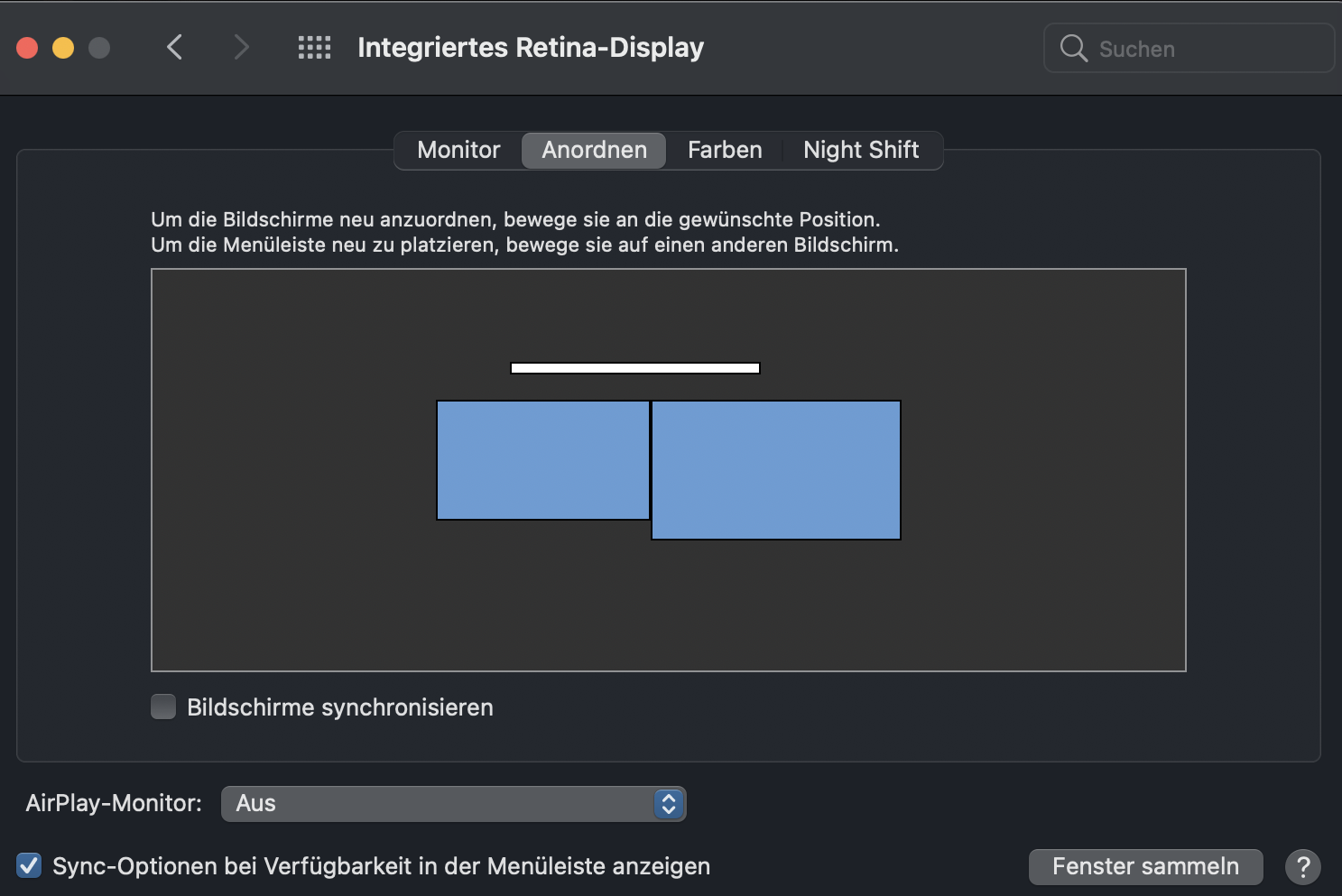 iMac Monitor schwarz / Hintergrund auf Monitor 2 sichtbar / jitsy Session oder defekt / parallels