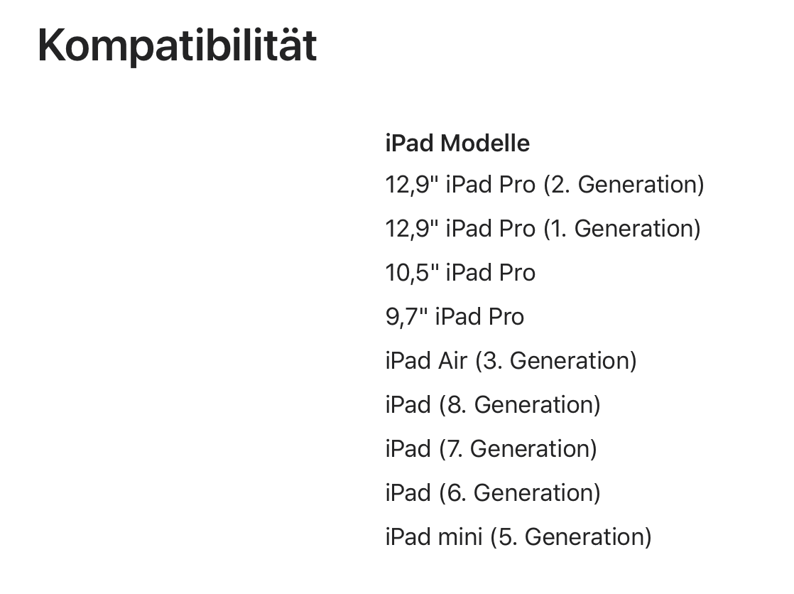 der Apple Pencil - 1. Generation ist mit folgenden Geräten kompatibel: