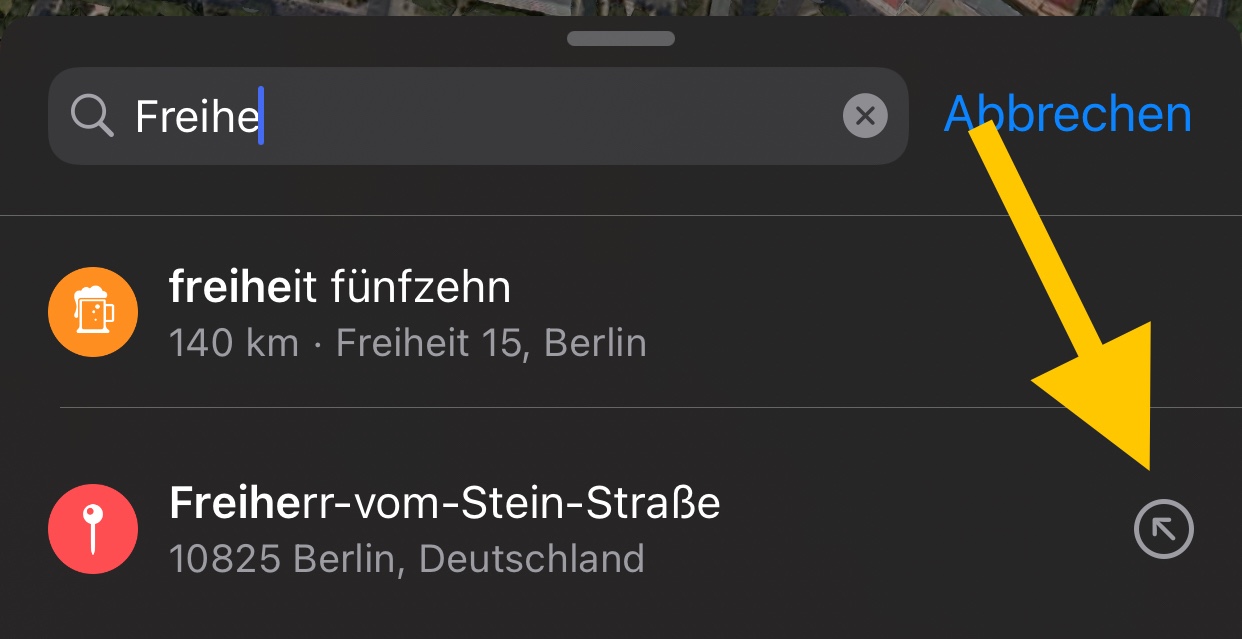 In der Karten-App funktioniert mein Verhalten nicht, da ich ab dem Zeitpunkt, wo ich einen Vorschlag anklicke, die Adresse im Nachgang nicht mehr editieren kann.