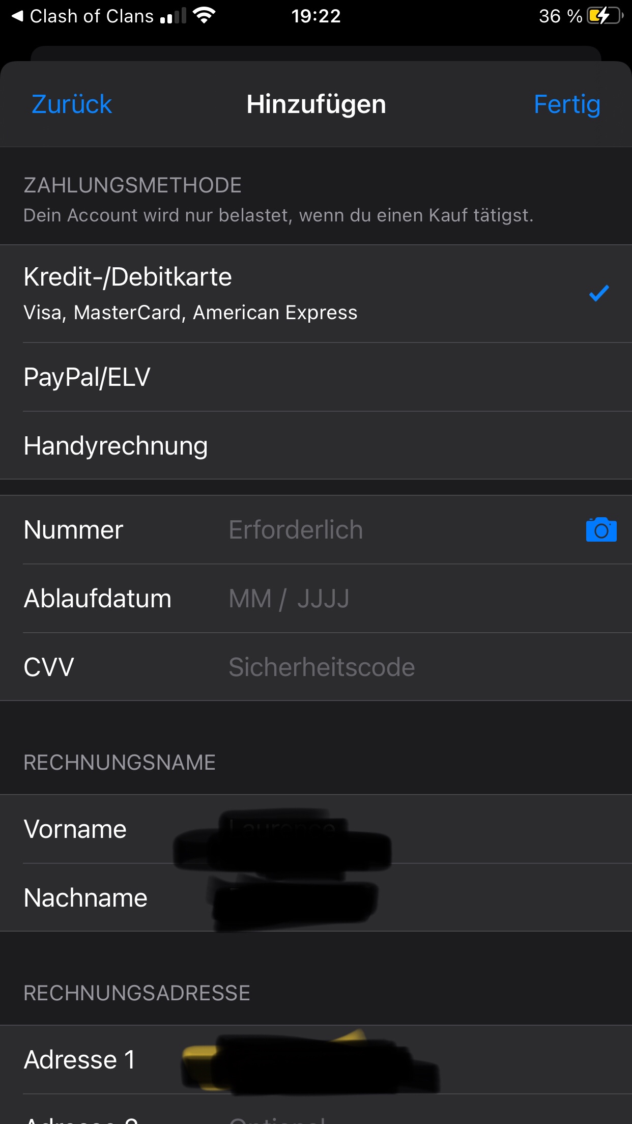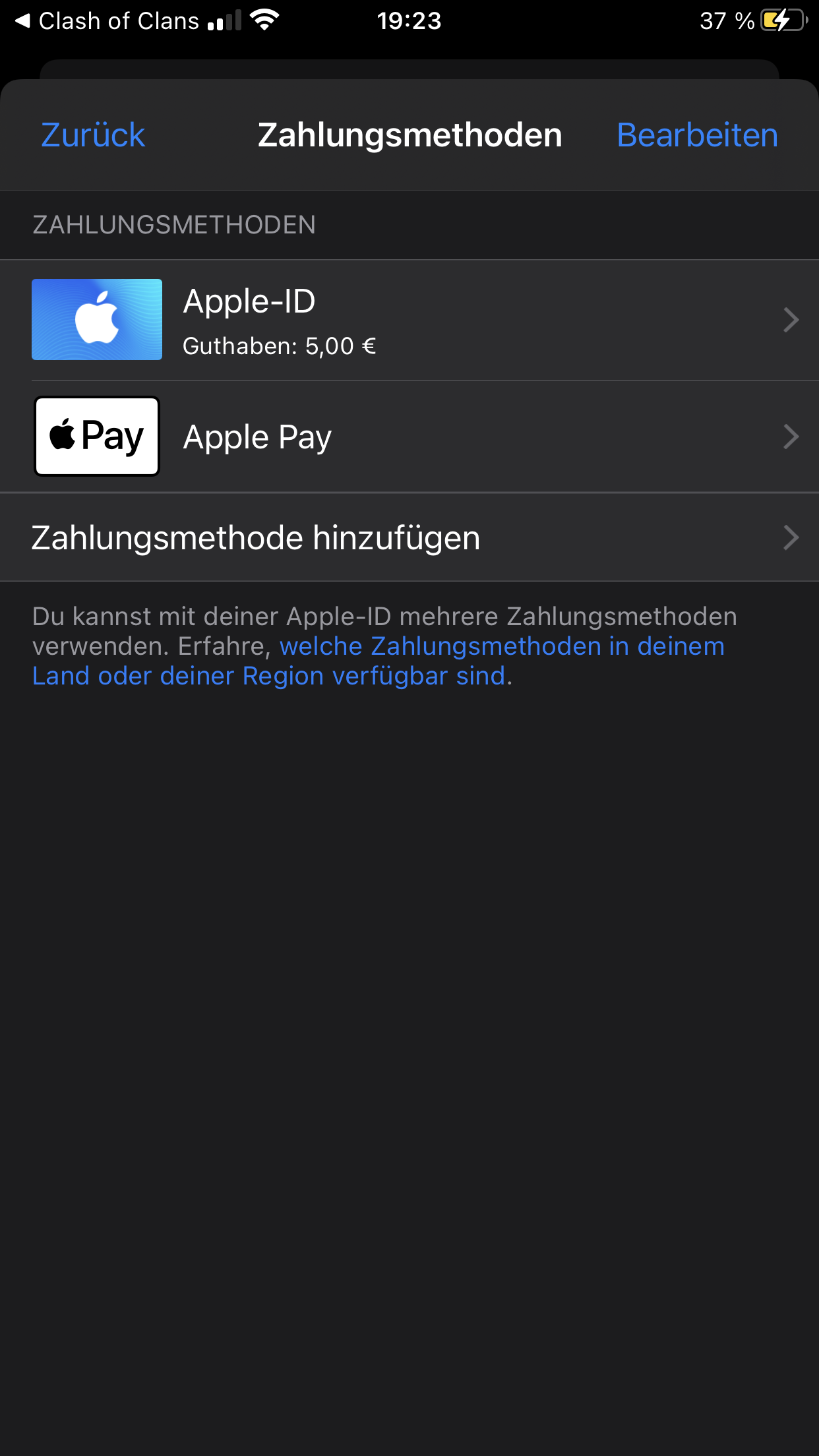 Ich habe folgendes Problem: Beim kauf von Gems in Clash of Clans werde ich nach der Bestätigung immer aufgefordert eine andere Zahlungsmethode anzugeben. Aber ich habe 5euro Appstore guthaben sowohl Applepay.