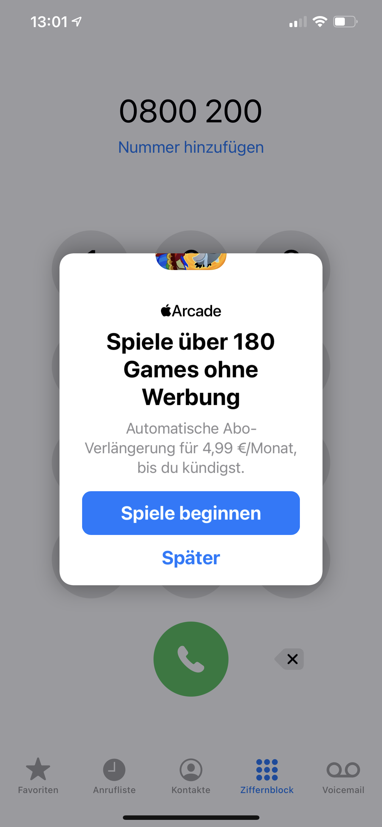 Apple Arcade pop-up Fenster tauch immer wieder auf