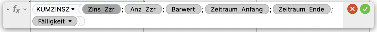 Diese wird von Numbers nicht angenommen, weil KUMZINSZ keine unterstützte Funktion ist.