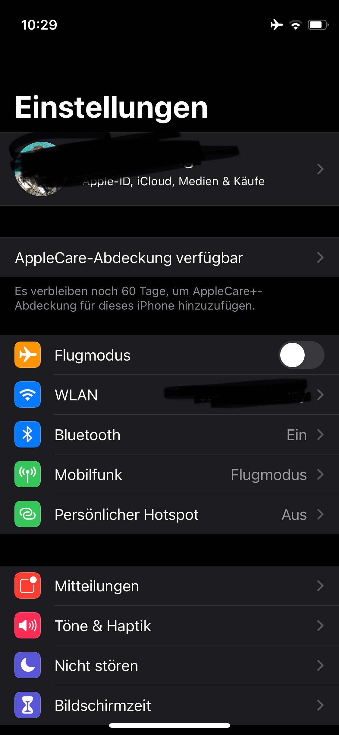 Flugmodus lässt sich nicht ausschalten (nur über Siri)