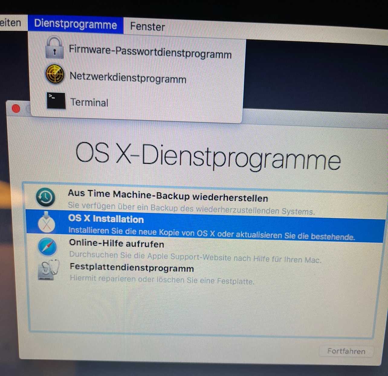 Wenn du nach "cmd R" hierher gelangt bist