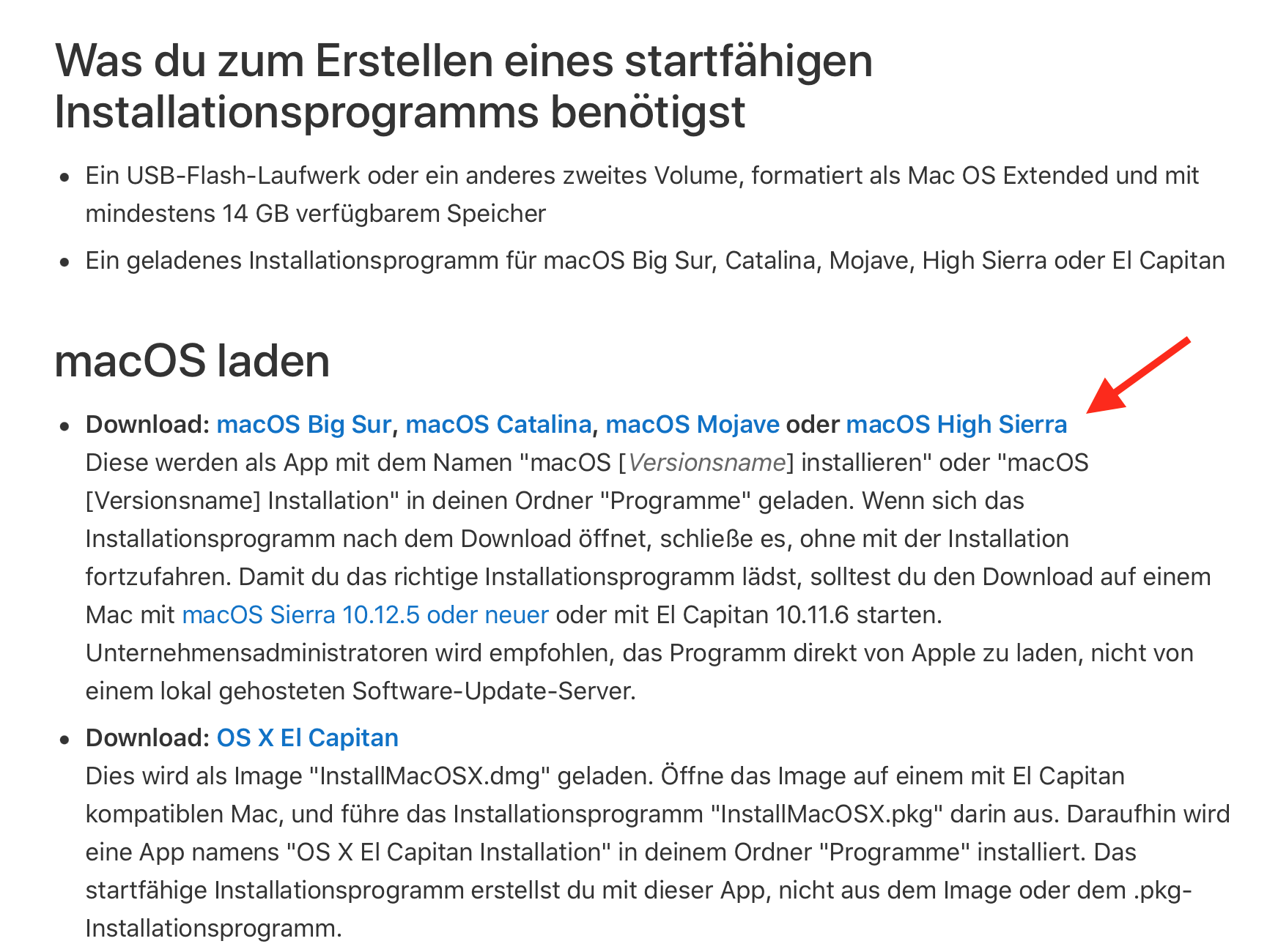 Aber, wenn es dir gelingt, das High Sierra.dmg von dieser Seite des Apple Support