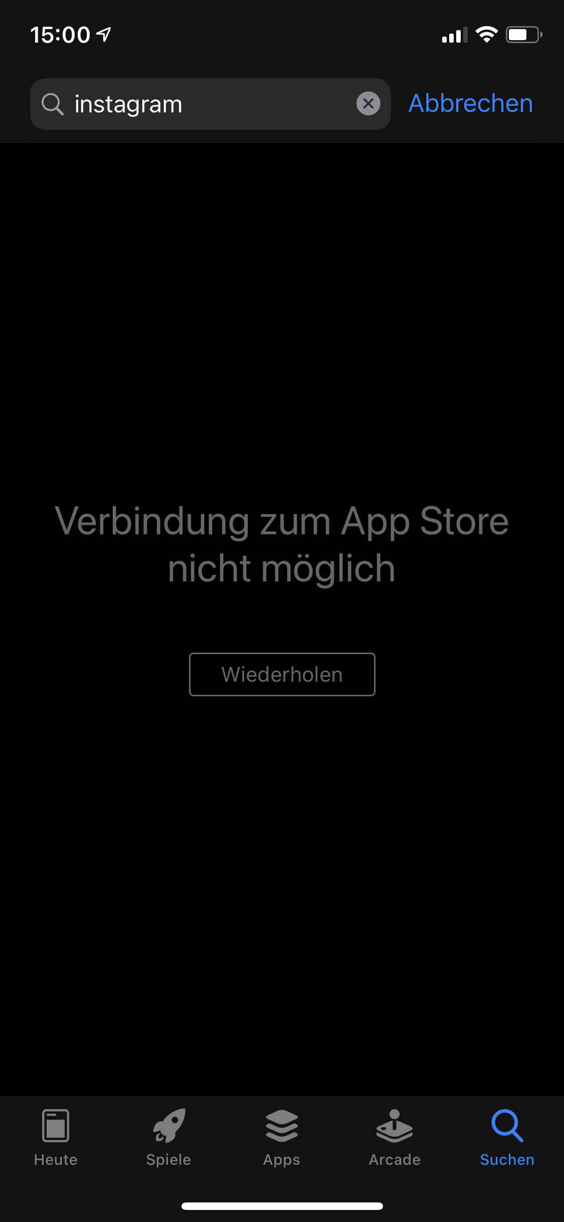 Auf meinem IPhone 11 Pro kann ich mich nicht mehr mit dem App Store verbinden, öffnen geht, aber sobald etwas gesucht wird oder ein Artikel angeklickt wird.