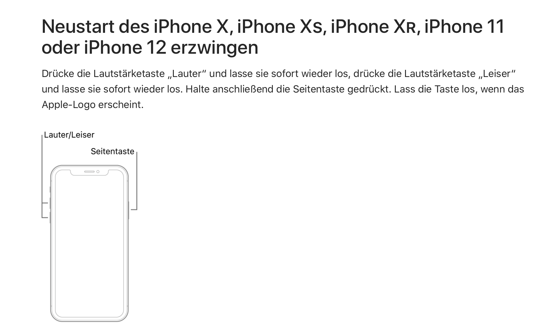 Erzwungener Neustart funktioniert so: