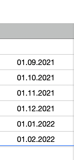 wie kann ich in Numbers das Datum Fortlaufend einfügen? z.b 01.01.2021 01.02.2021