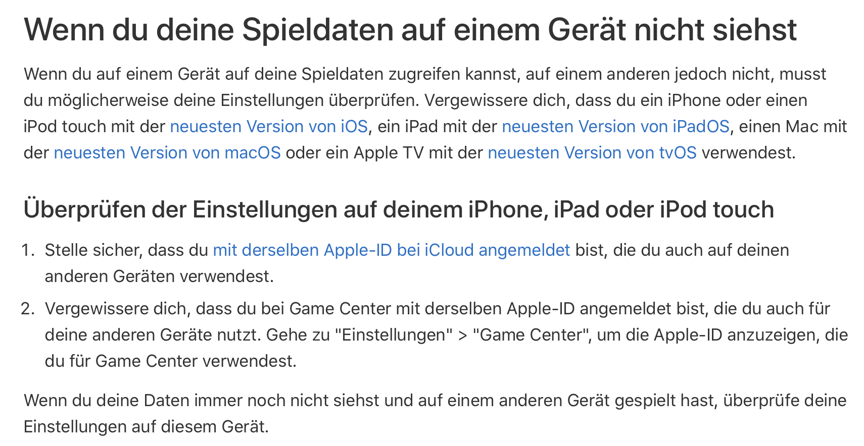 nein, es hat noch nie geklappt. Ich spiele sonst wie gesagt auch keine anderen Spiele. Dachte mir einfach, wenn ich das Spiel zu Hause auf dem iPad spiele, kann ich außerhaus mit dem iPhone einfach im gleichen Level weiter spielen… oder versteh ich da etwas falsch.