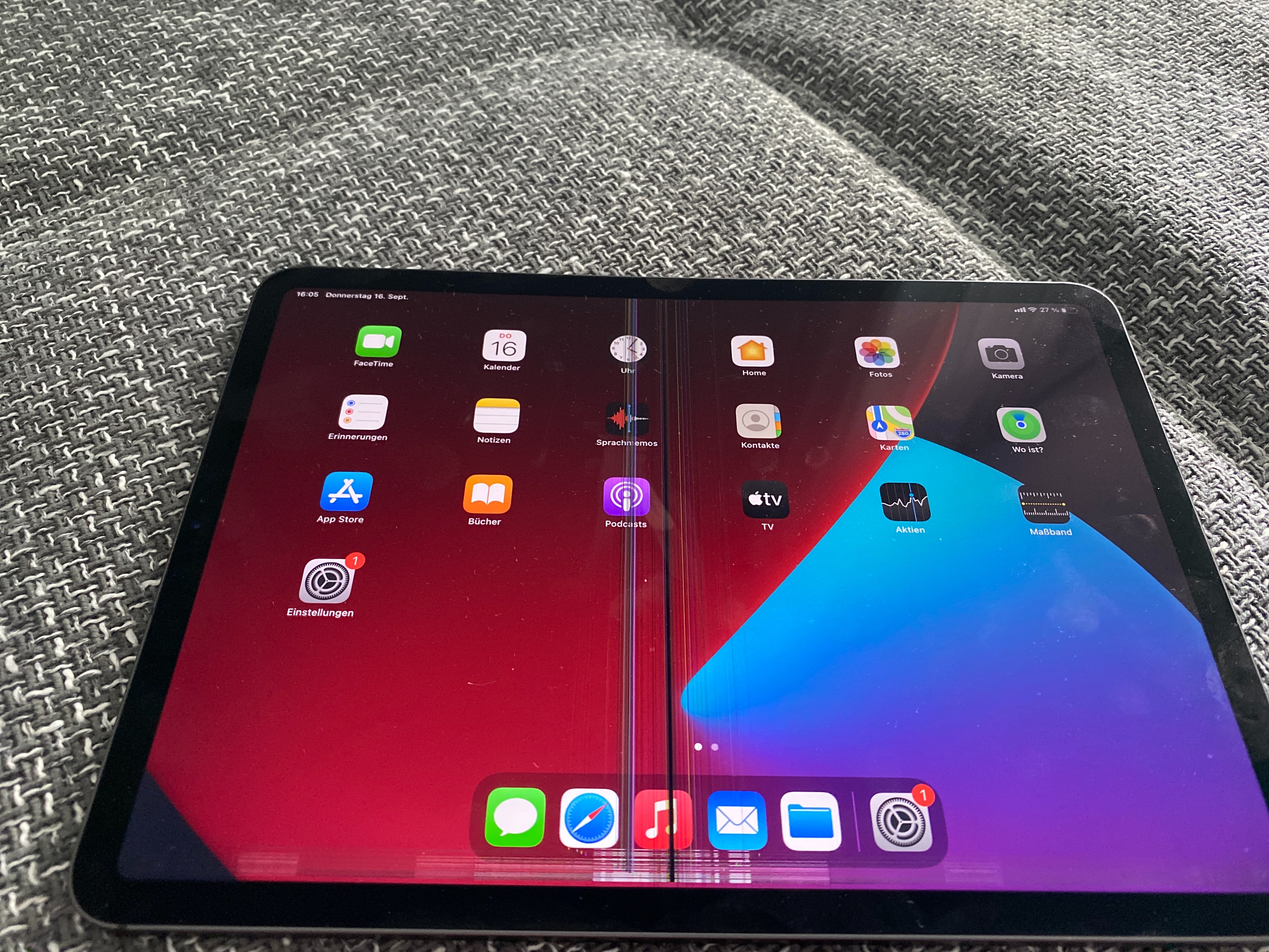 nach einem halben Jahr hab ich mein IPad Pro ausgepackt aus der Verpackung da ich dies für die Arbeit brauche . Leider beim einschalten des Geräts der Schock und dieser Anblick , ich kann mir nicht erklären wie das zu Stande gekommen ist da ich das IPad wieder in die Verpackung getan habe und dies in eine Schublade gelegt habe.