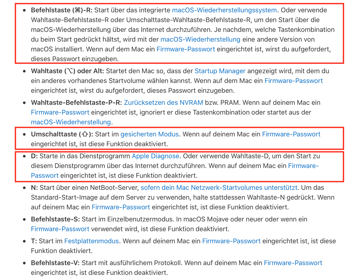 Weitere Möglichkeiten bieten verschiedene Tastenkombinationen beim Start, die helfen könnten, den Fehler einzugrenzen
