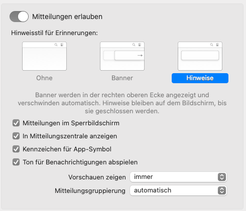 Seit dem letzten Update auf 11.6 werden werden Hinweise nicht mehr angezeigt. Ich habe für Erinnerungen und Kalender in der Mitteilungszentrale "Hinweise" eingestellt: