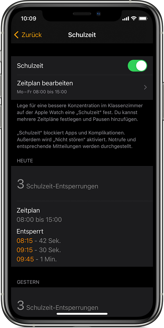 "Schulzeit" auf der Apple Watch verwenden