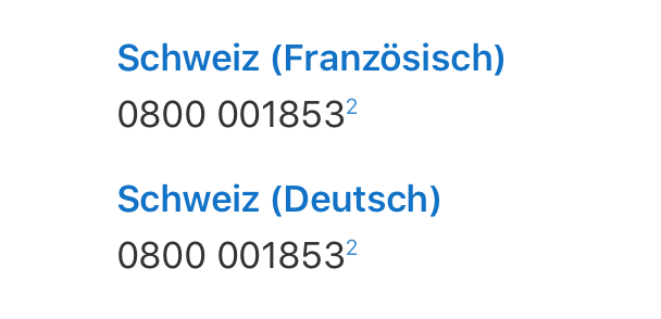 Aus dem Festnetz auch in der Schweiz kostenlos.