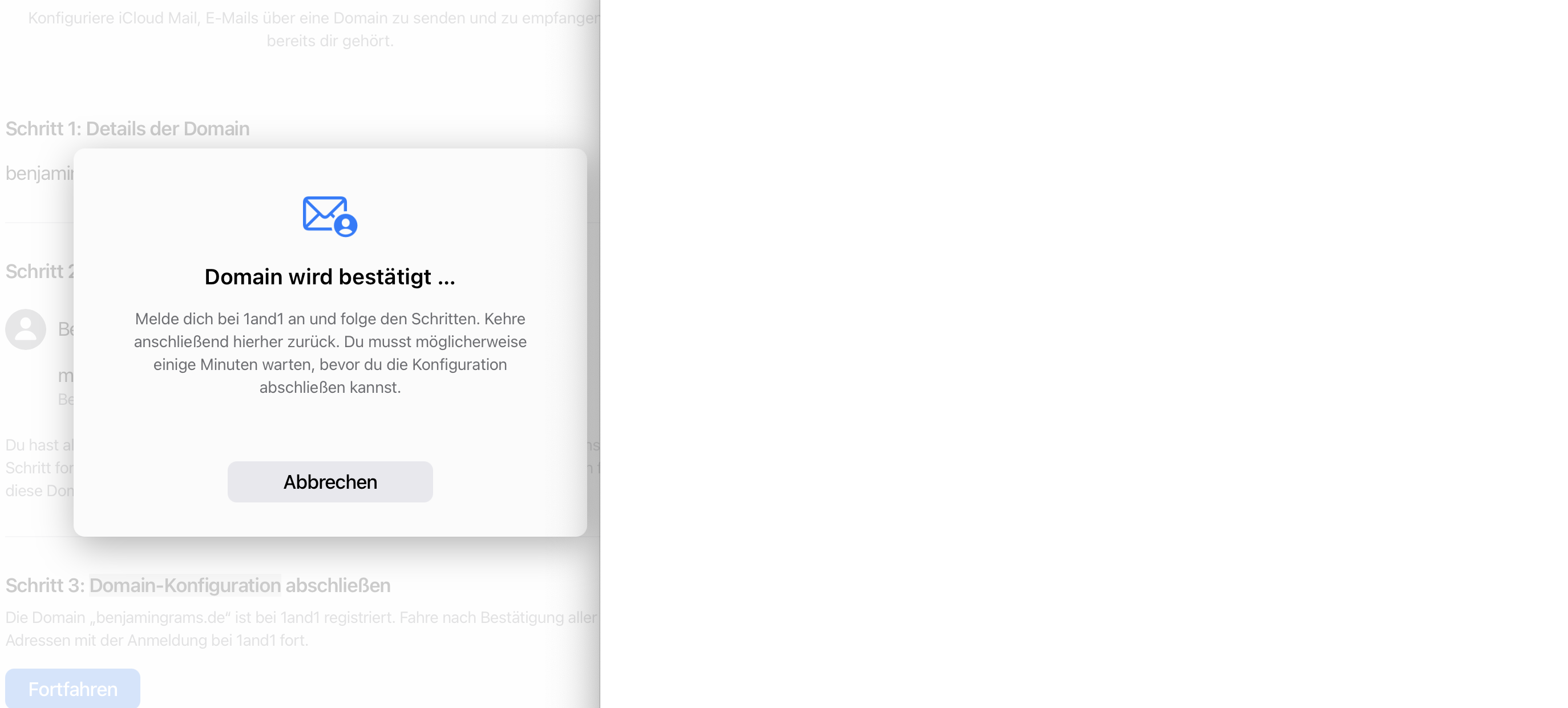 Jetzt fehlt noch dieser Schritt: Schritt 3: Domain-Konfiguration abschließen.