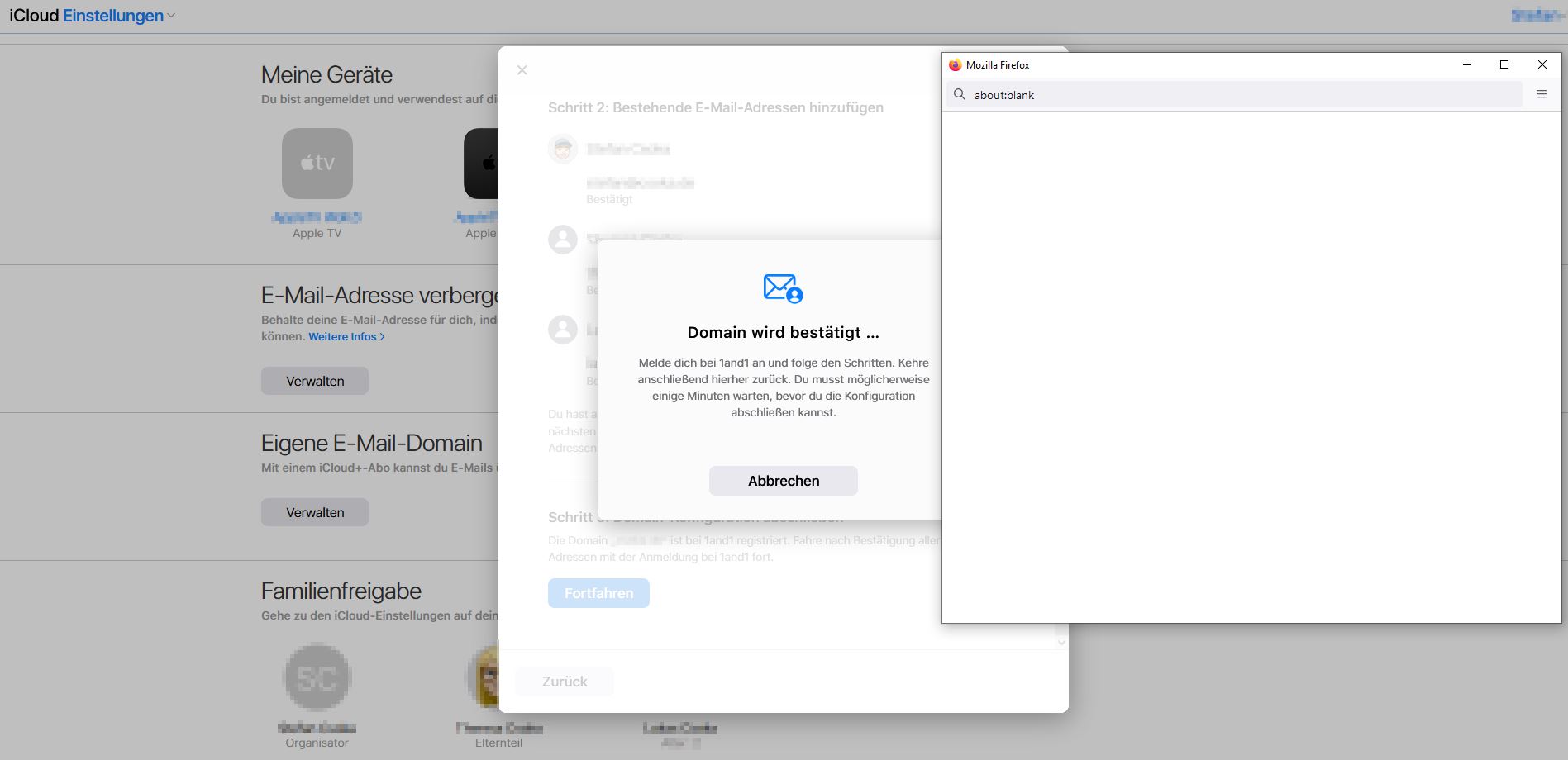 ich wollte den Dienst "Eigene E-Mail-Domain" einrichten.