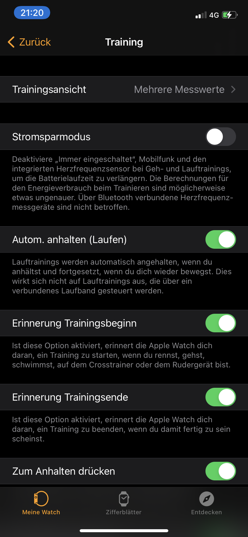 Stop&Go auf der Apple Watch für Gehen Outdoor und Radfahren Outdoor einstellen