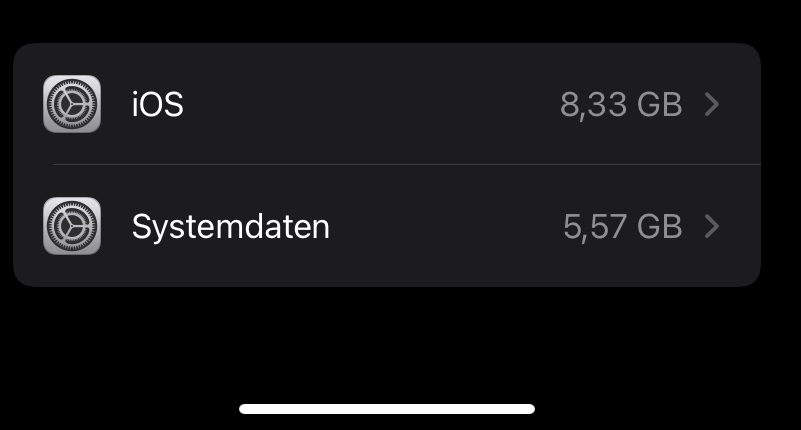 Bei mir nimmt iOS 7,27 GB ein und die Systemdaten 11,9 GB.