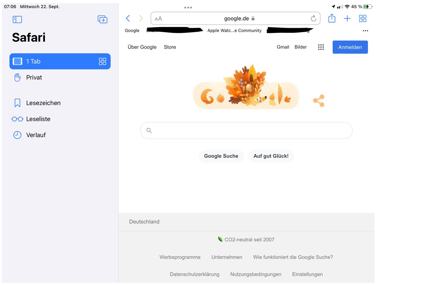 Wenn ich über Safari nun zu diesen Lesezeichen in den Unterordner navigiere und diese dann auswähle, muss ich 3x klicken um den rechten Tab zu schließen um auf das Vollbild zu kommen.