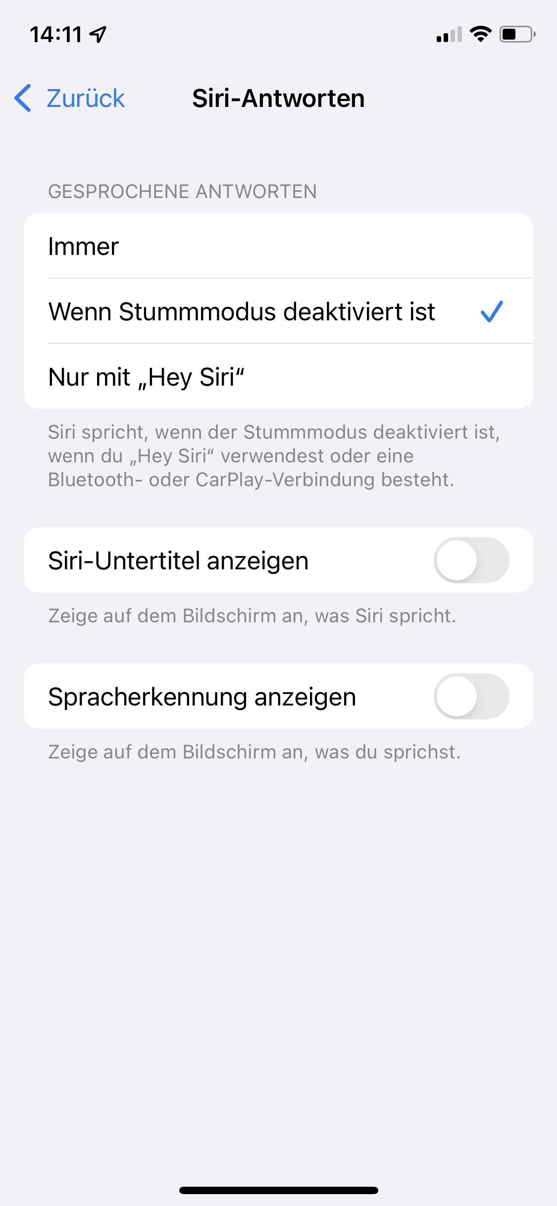 Deaktiviere sonst einmal die Funktion, führe einen erzwungenen Neustart durch und wähle erneut die gewünscht Einstellung (per Sprachbefehl oder Taste) aus: