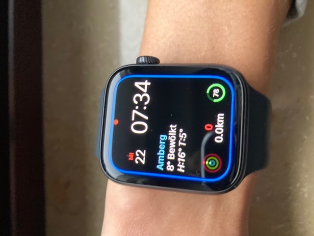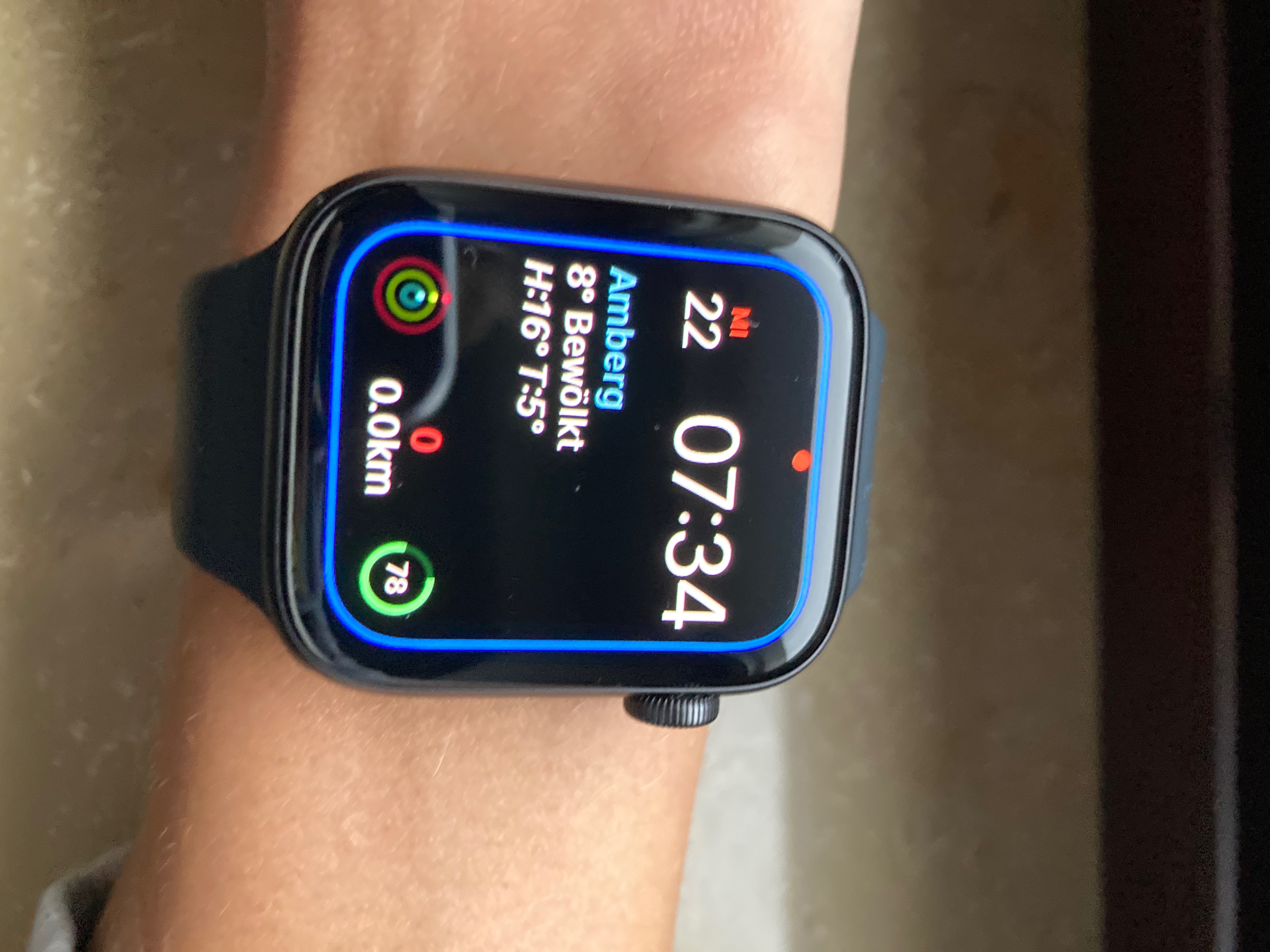 Was ist das für ein blauer Rahmen bei der Apple Watch nach dem aktivieren?