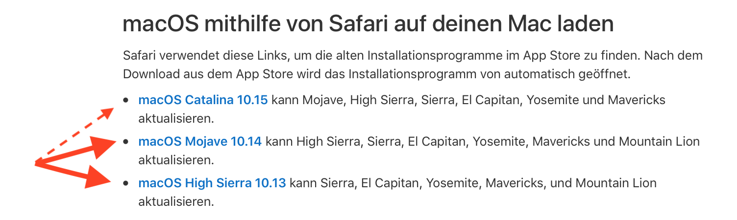 Wenn du magst, kannst du von dieser Seite des Apple Support mit Safari ❗️das High Sierra/Mojave/Catalina.dmg herunterladen
