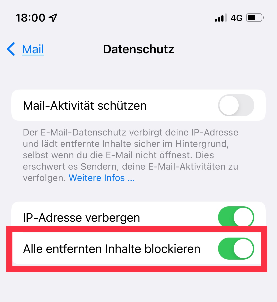 Ich meine nicht an E-Mails angehängte Bilddaten oder andere Dokumente. Mit dem automatischen Laden von Bildern meine ich in erster Linie solche, die direkt in dem Text einer E-Mail eingebunden sind. Zum Beispiel solche, die man häufig in Newslettern findet. Diese werden unter iOS 15 jetzt generell geladen/angezeigt; auch in deren Vorschau. In iOS 14,8 wurden E-Mails (eines IMAP-Accounts) zunächst ohne diese Bilder angezeigt und oben konnte man in jeder einzelnen E-Mail die Option „Alle Bilder laden“ aktivieren, um sie nachträglich vom Server zu laden.