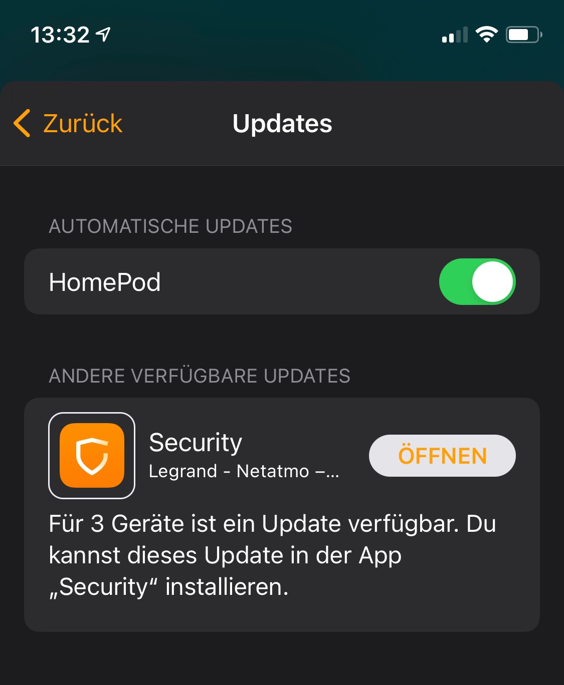 Seit dem Update auf iOS 15 zeigt die Home-App, dass angeblich Software-Updates für meine Netatmo Outdoor Kameras verfügbar wären und die App fordert mich auf, die Security App von Netatmo zu öffnen. Allerdings gibt es 1. kein Update, ich habe die aktuellste Version 3.2.0 und 2. bietet die Netatmo App gar keine Möglichkeit um manuell Updates durchzuführen.