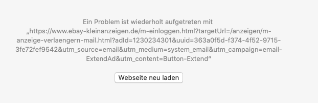 Safari kann sich nicht mehr bei Ebay-kleinanzeigen einloggen.