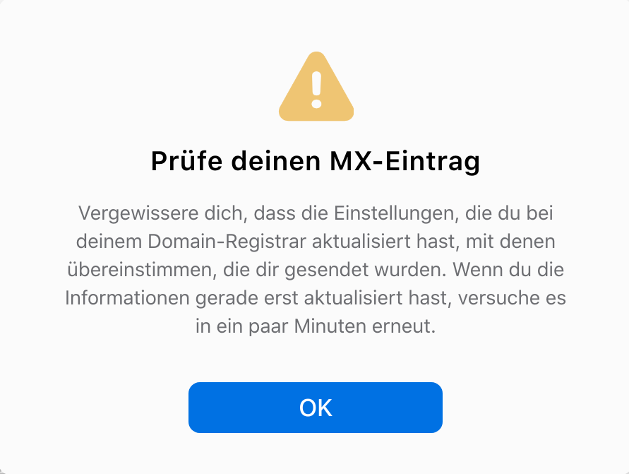 Fehlerhafte Bestätigung - Prüfen Sie den MX-Eintrag