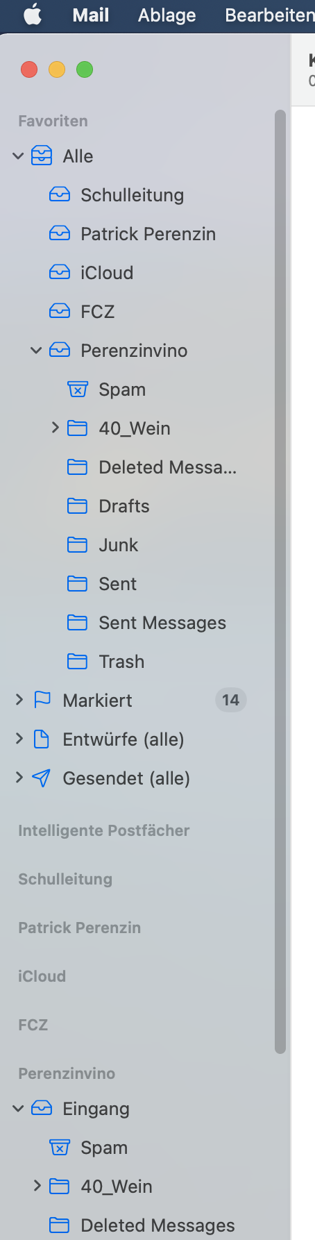 In meiner Favoritenleiste wird das Postfach "PerenzinVino" nicht so angezeigt wie die anderen Postfächer. Woher kommt das und wie kann ich das ändern?