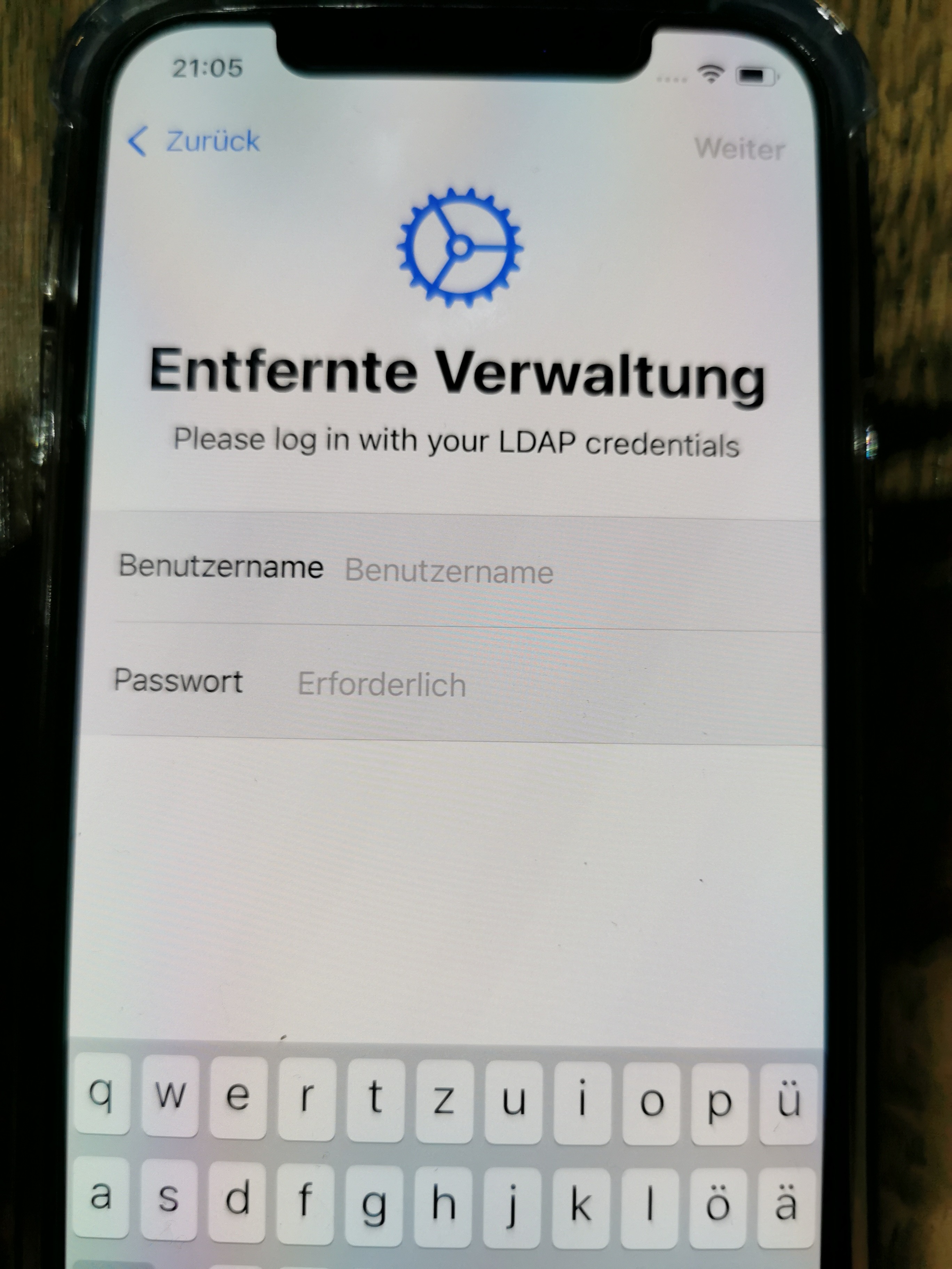 Dann versuche den Kundenservice dieses Handy Shops zu erreichen, und frage dort nach ob das IPhone von denen aus für das MDM gesetzt wurde. Wenn ja: Hast du eventuell Anmeldedaten für den LDAP-Service von denen per eMail erhalten?
