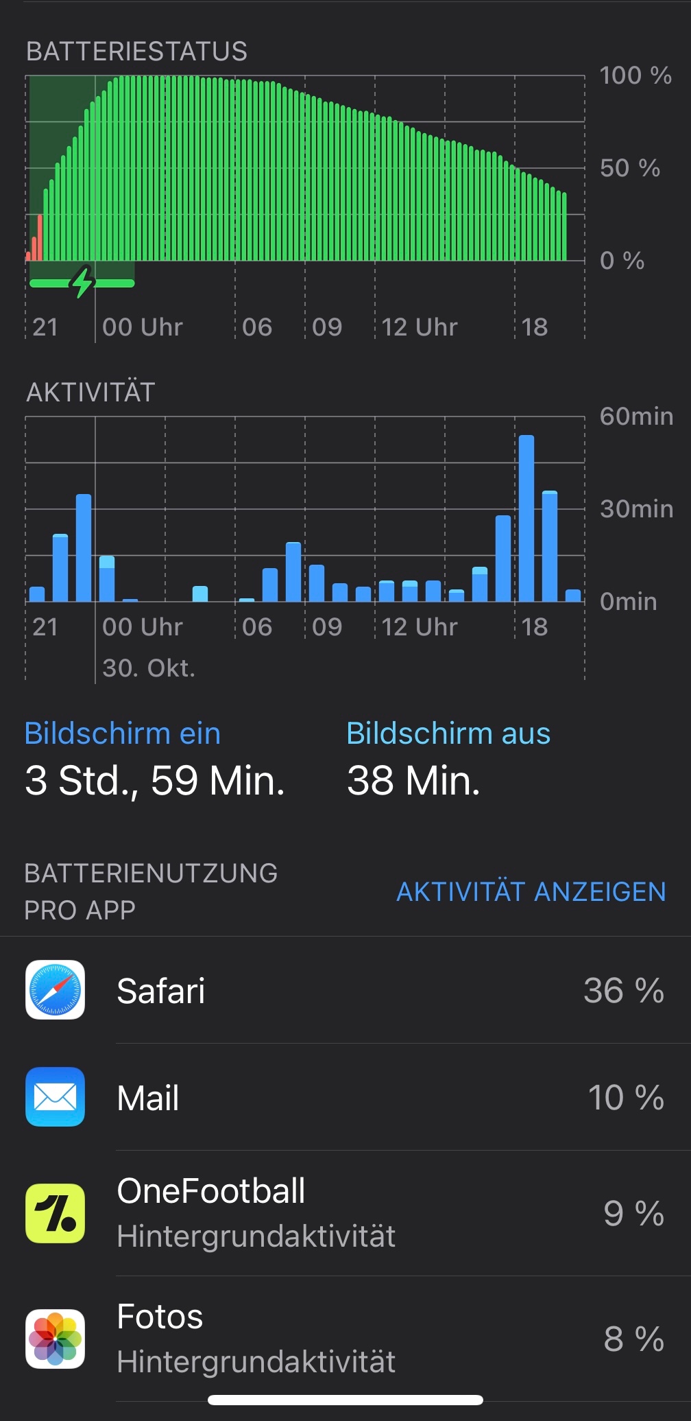 Trotzdem ging der Akku wieder runter und es zeigt fast 4 Stunden on screen time an.