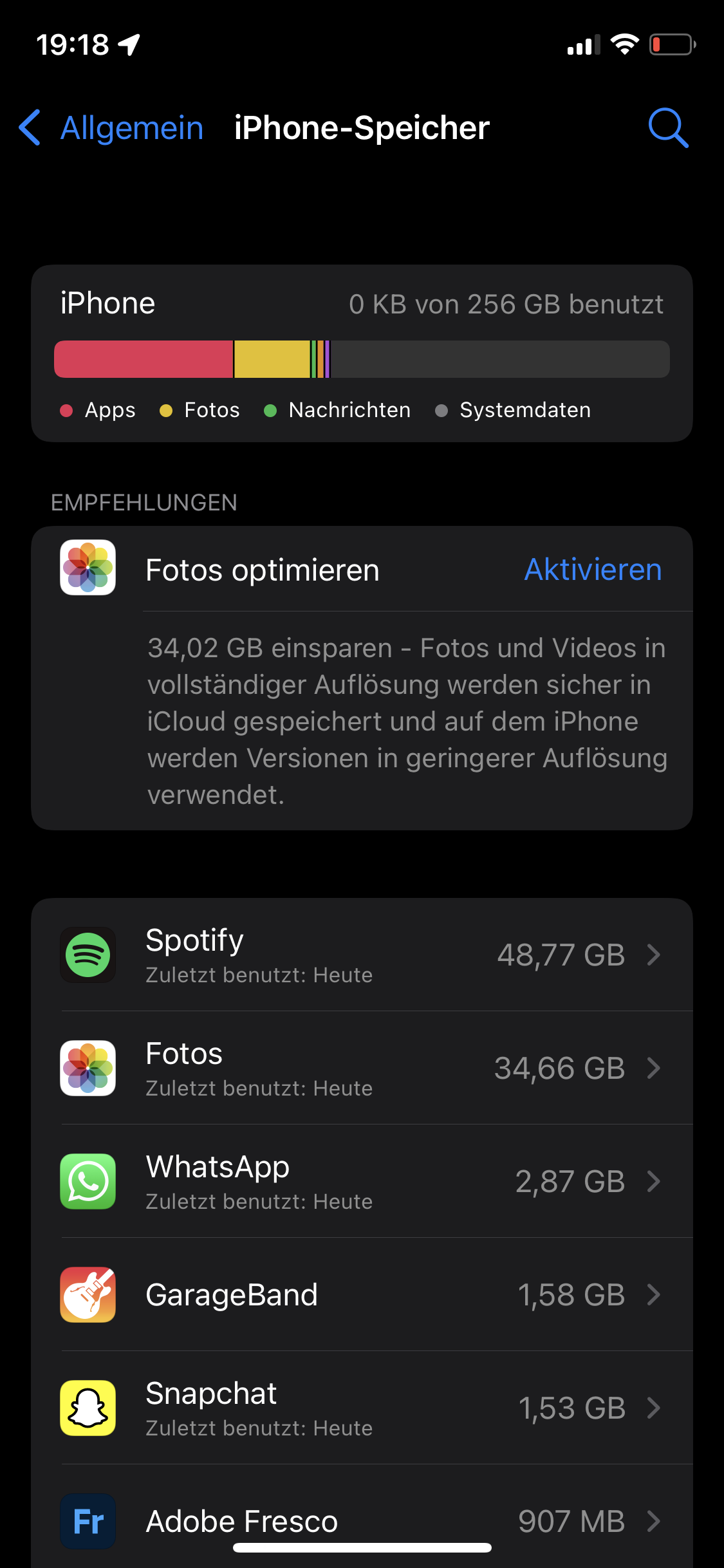 Hat noch jemand das Problem das die Speicher Anzeige beim IPhone Xs nicht lädt ? Auch nach 5 Minuten laden. ( Siehe Bild)