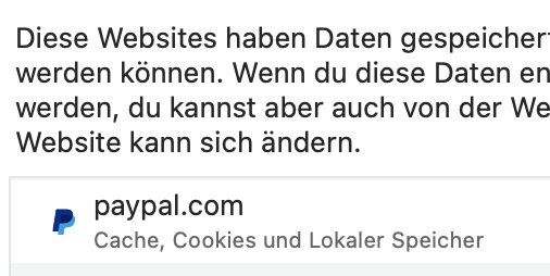 Und ich hab - als Mac Neuling (mein Background ist Linux vor von 20 Jahren, und heute halt berufsbedingt WinDosen...) - nicht die korrekten Termini verwendet: es sind Daten von Websites, nicht Cookies, und eben im Lokalen Speicher; über Safari kann ich alle Löschen, aber die sind dann wieder da.