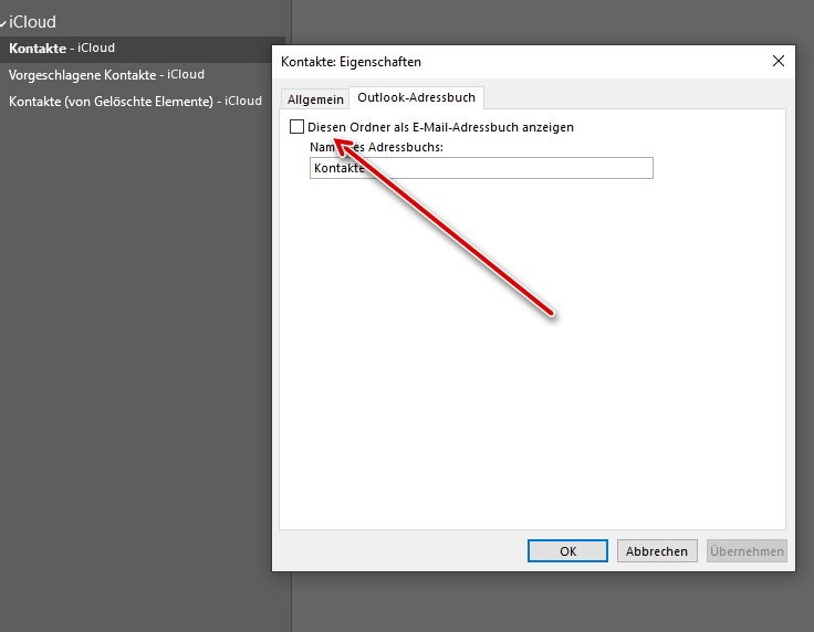 Problem mit iCloud Kontakten in Outlook