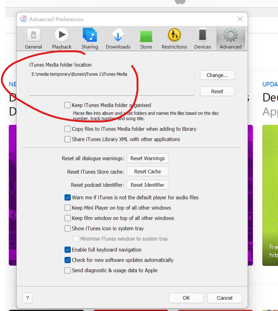 iTunes für Windows - Dateien werden immer in den Standardpfad C:\Users\%username%\music erbrochen.