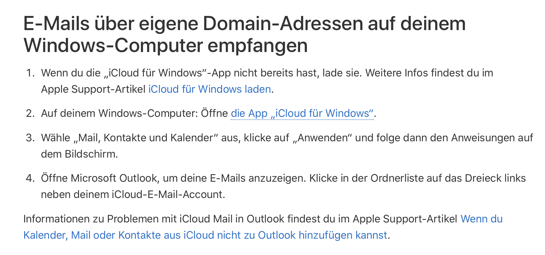 Wie kann ich die eigene Domain (iCloud +) auch mit der MS Outlook-Verbindung nutzen?
