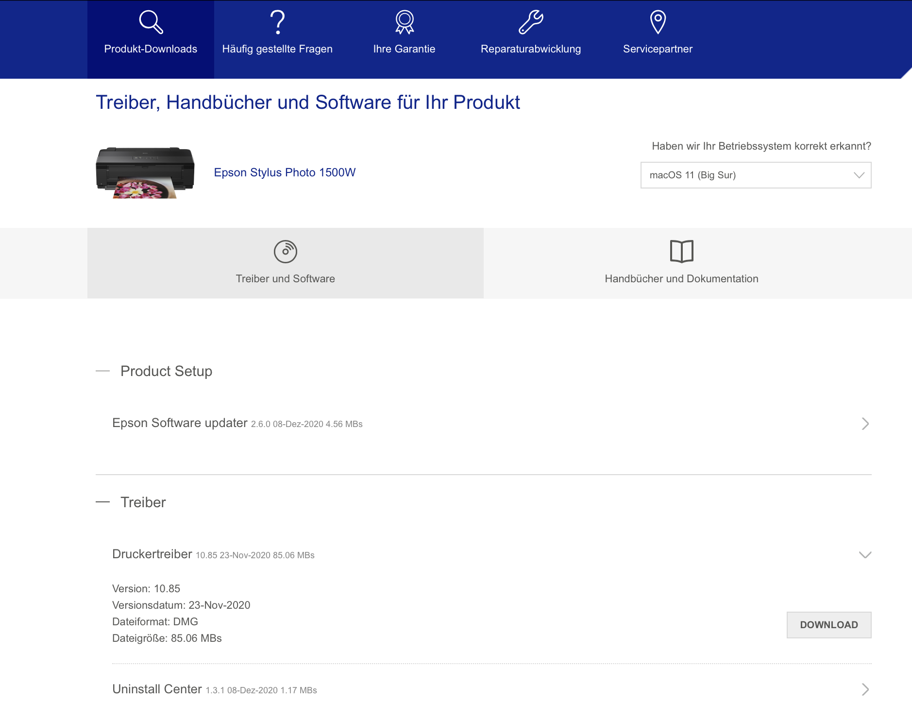 EPSON Stylus Photo 1500W mit Mac mini - macOS Big Sur (M1, 2020) nutzen