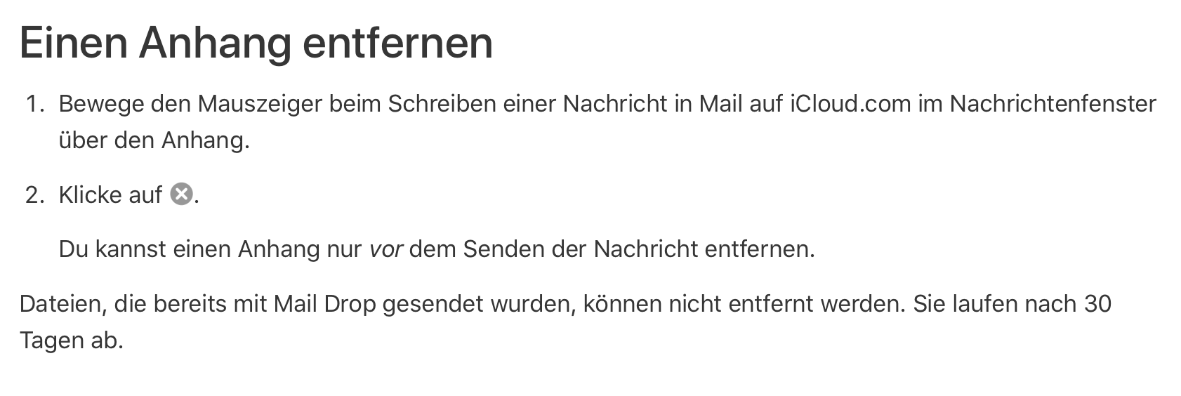Kann ich einen e-mail Anhang, den ich über mein MacBookPro mit mail drop versendet habe (Videos) stoppen? Ich habe an meine Schüler versehentlich die Unterrichtsvideos vor 2 Tagen gesendet, sie sollten aber nur das Skript bekommen. Kann ich das irgendwie stoppen?