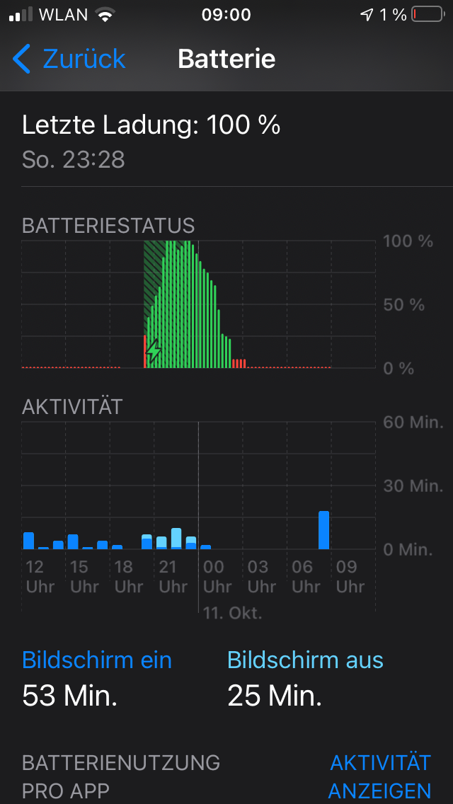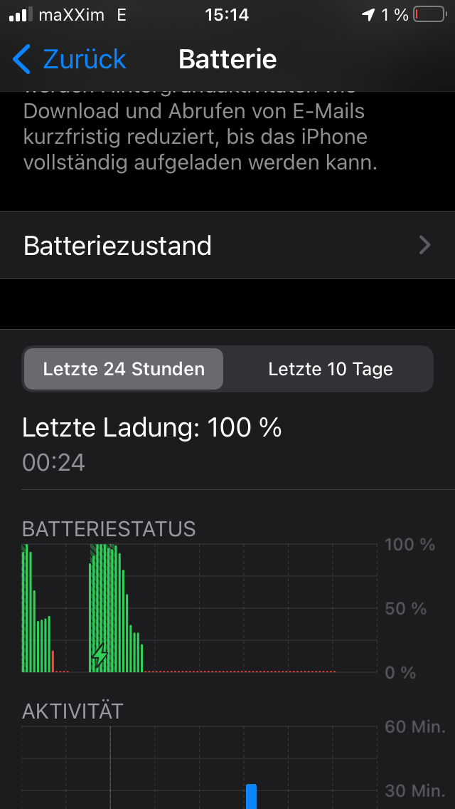 iPhone bleibt stundenlang auf 1% Akkuleistung