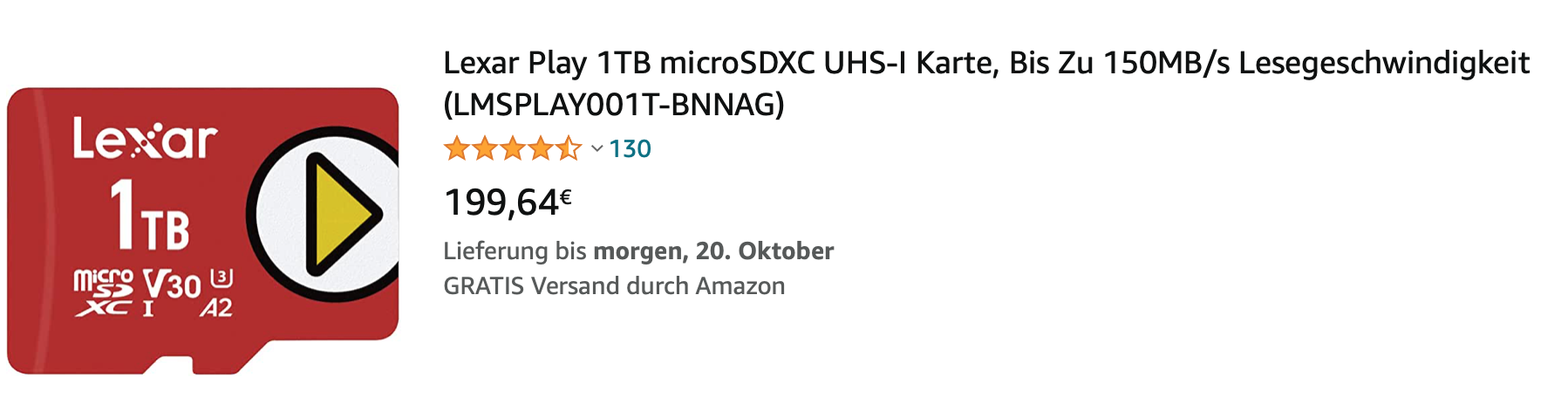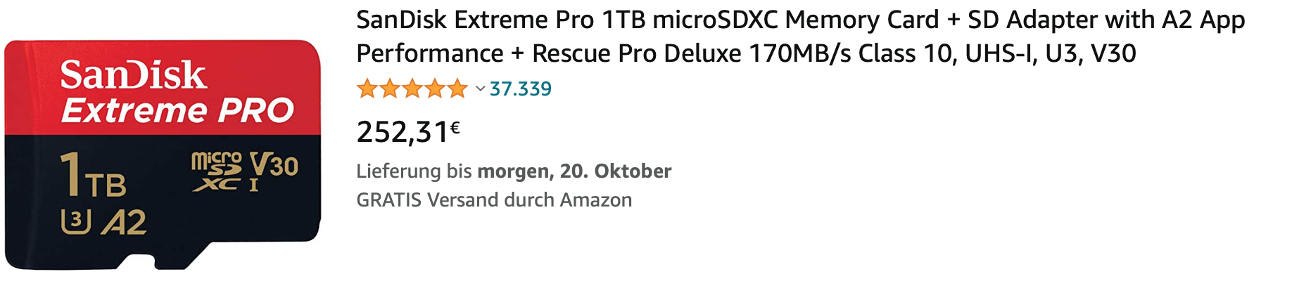 Ich habe am 18.10.21 das neue MacBook ProM1 Max bestellt und möchte eine 1 TB sandisk Micro SDXC-Karte.