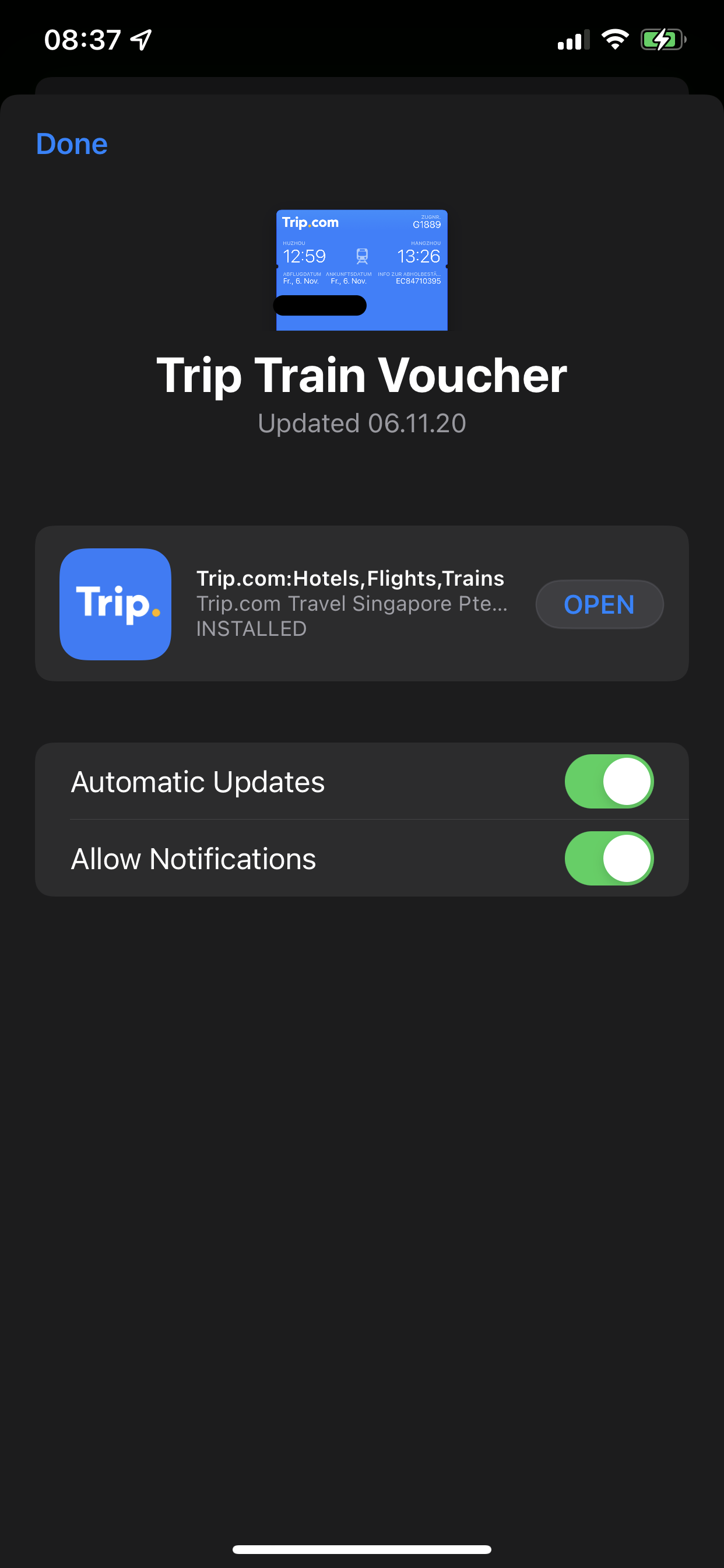 Sieht dies so in etwa bei dir aus? Falls nicht, was ist bei dir auf deinem iPhone zu sehen, wenn du diese Tickets antippst?