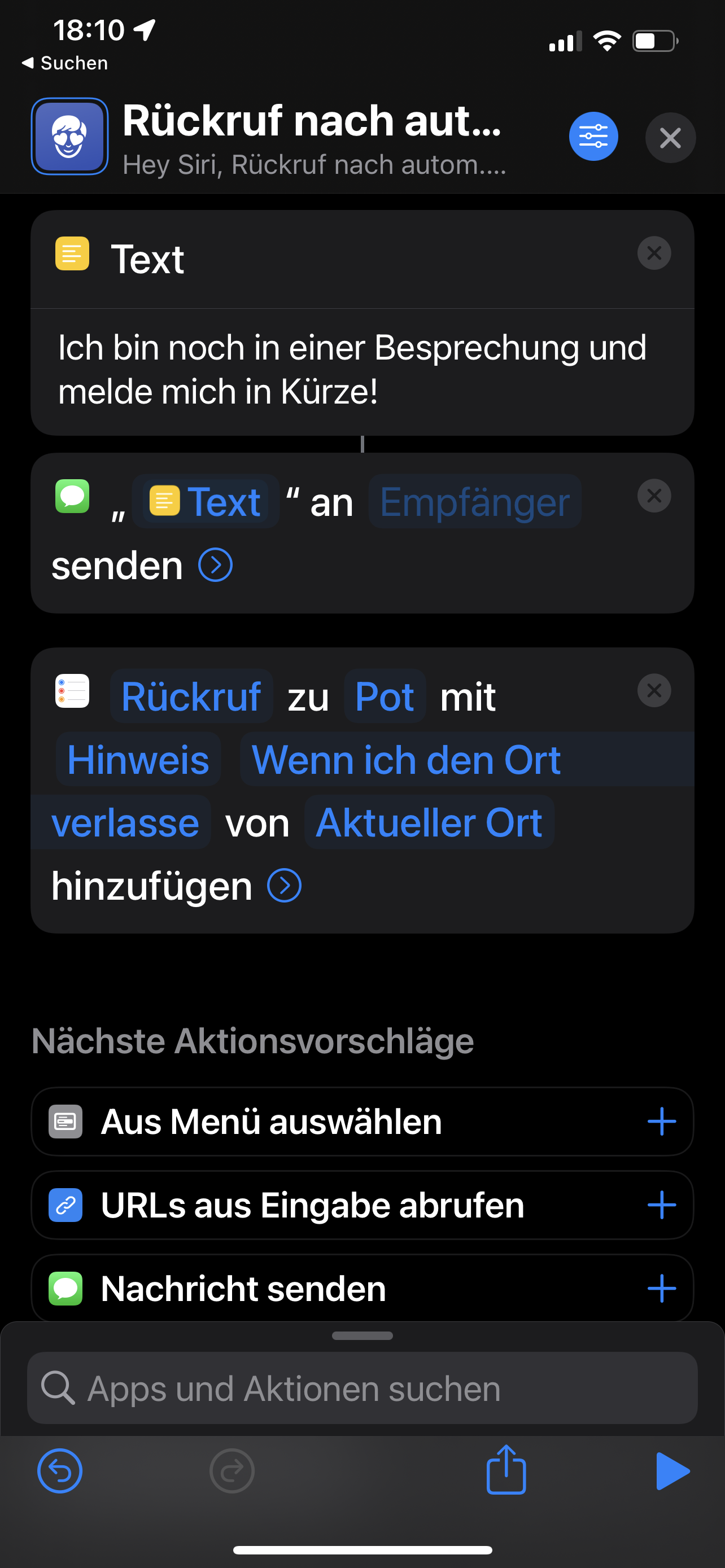 diesen mit nachricht abgelehnten anruf hätt ich gern in meiner erinnerungsapp- sobald der vorgefertigte text versandt wird, gibts eine erinnerung sobald ich standort verlasse.