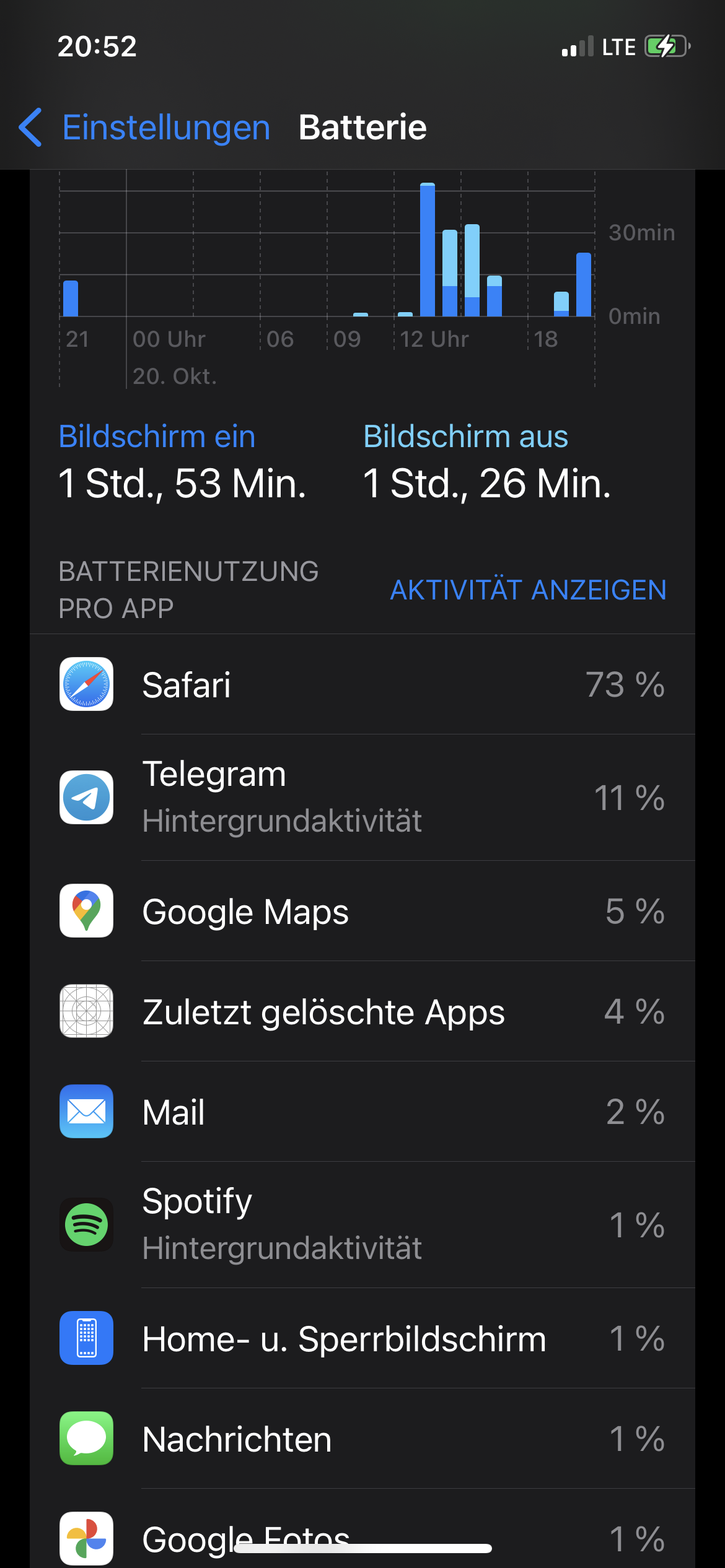„Zuletzt gelöschte Apps“ in den Einstellungen zum Batterieverbrauch