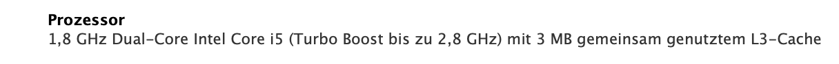Hallo, welchen Prozessor hat das MacBook Air 13.3/1.8/4/128Flash, brauche die Info zum Verkauf bei Ebay