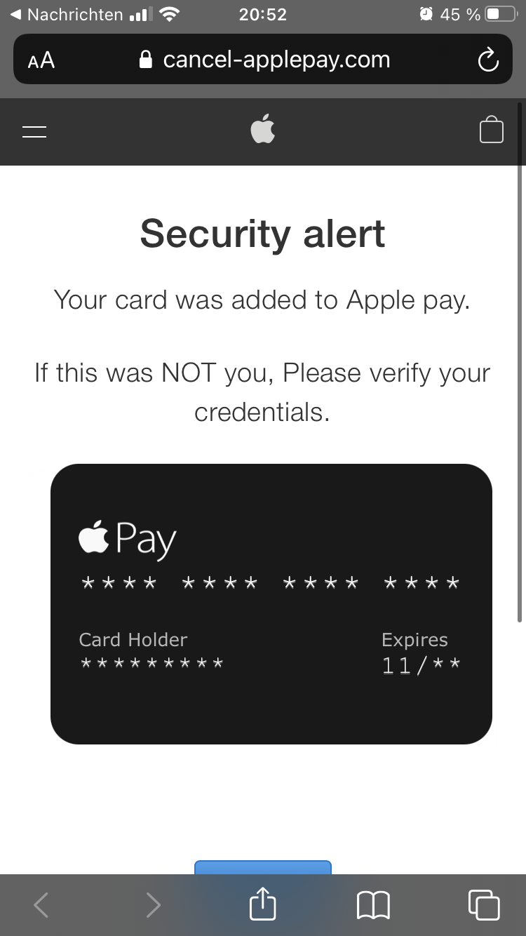 Wenn man auf der Seite, die wie die originale Website von Apple aussieht, auf etwas anderes klickt tut sich nichts… was mich sehr stutzig macht.