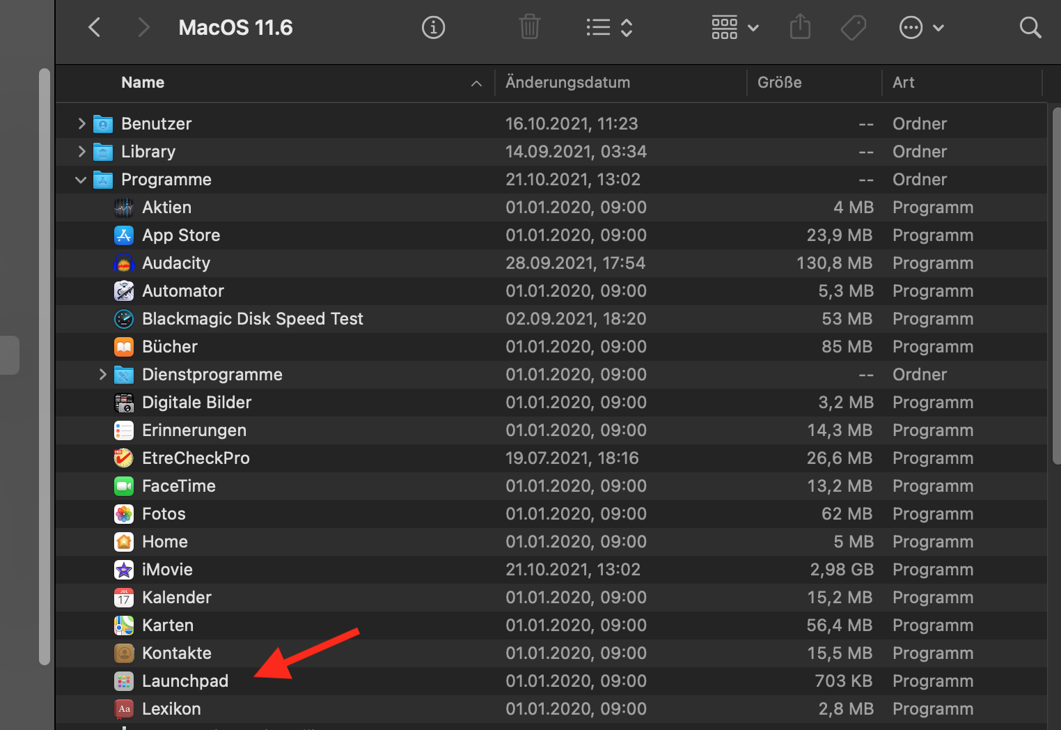 Jetzt sollten wieder alle Programm auf dem Launchpad erscheinen 🍎