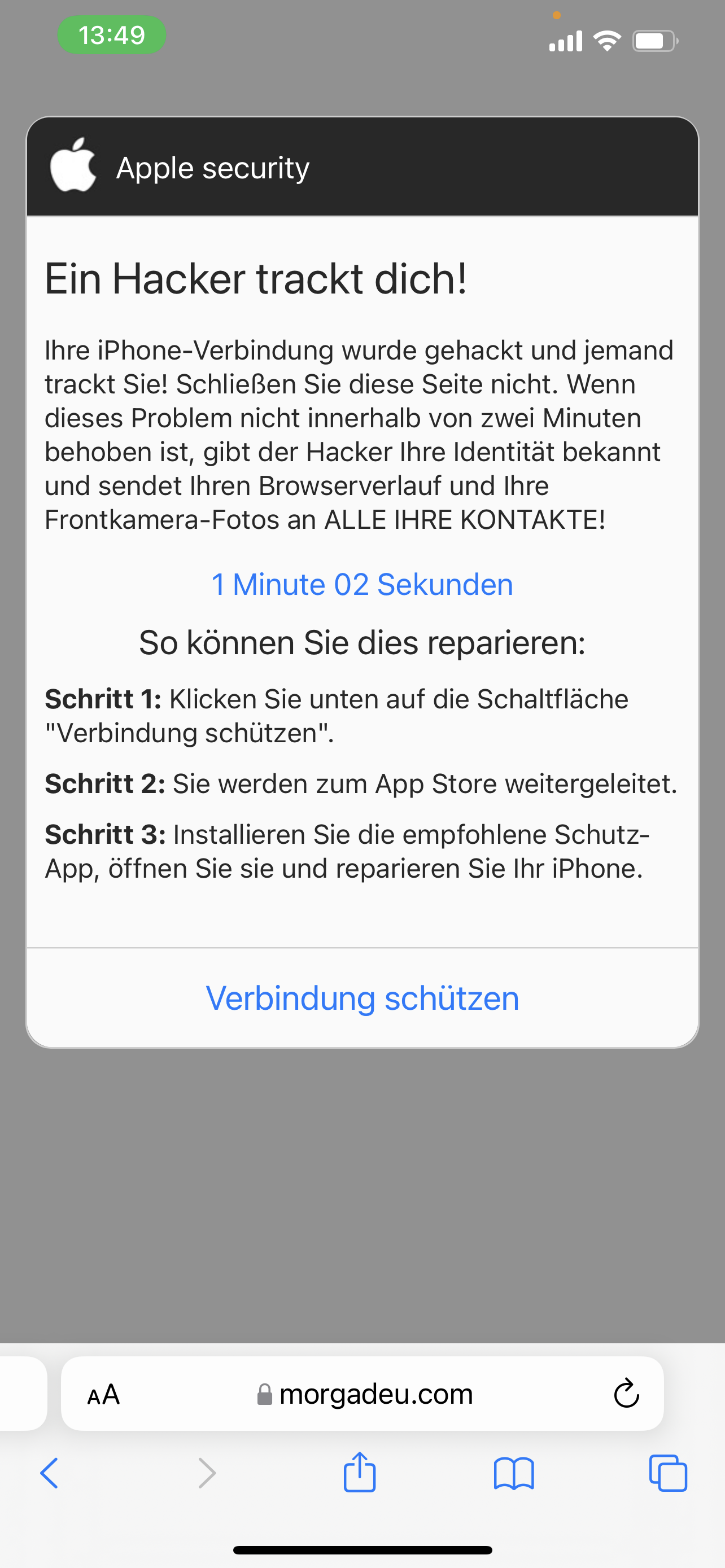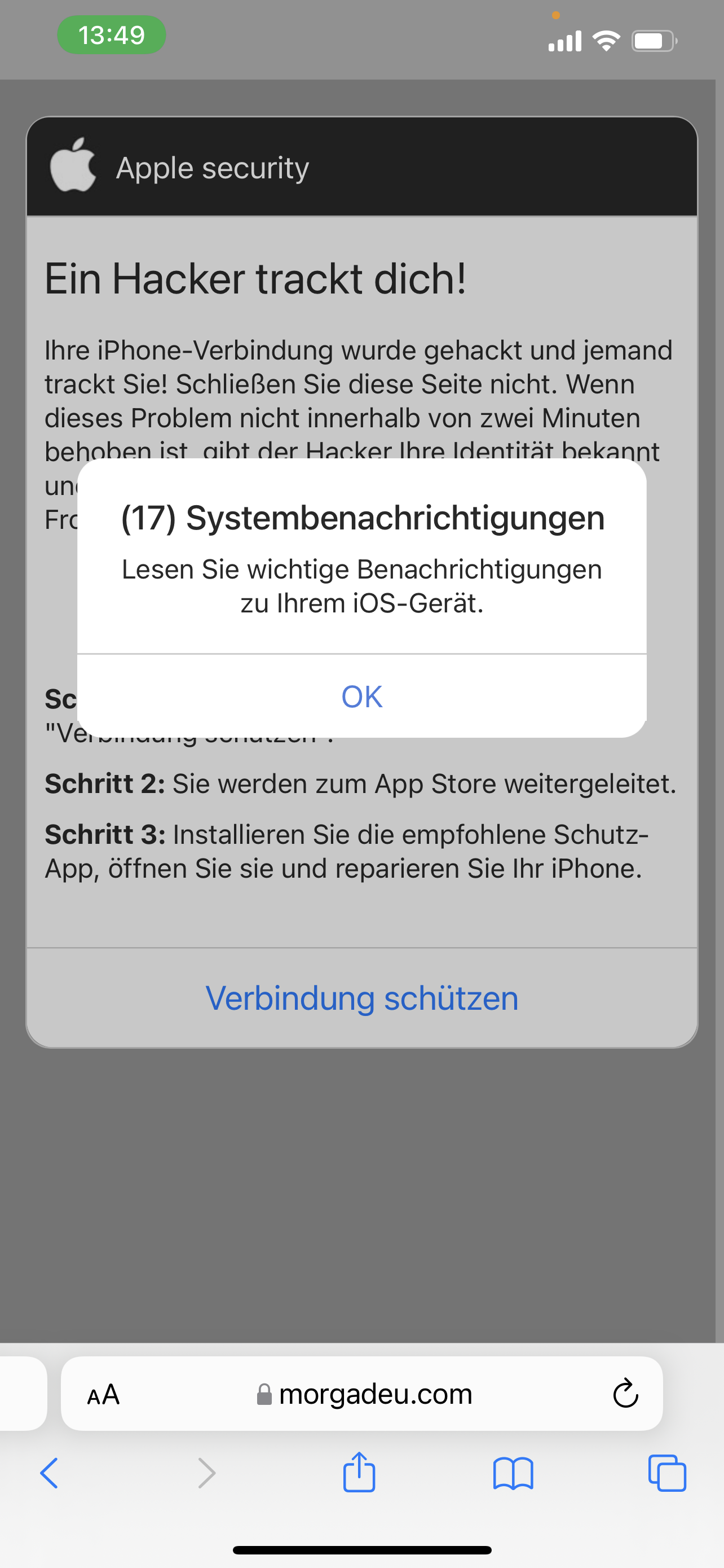 Hier noch eine Information von Apple zu solchen Nachrichten: https://support.apple.com/de-de/HT204759