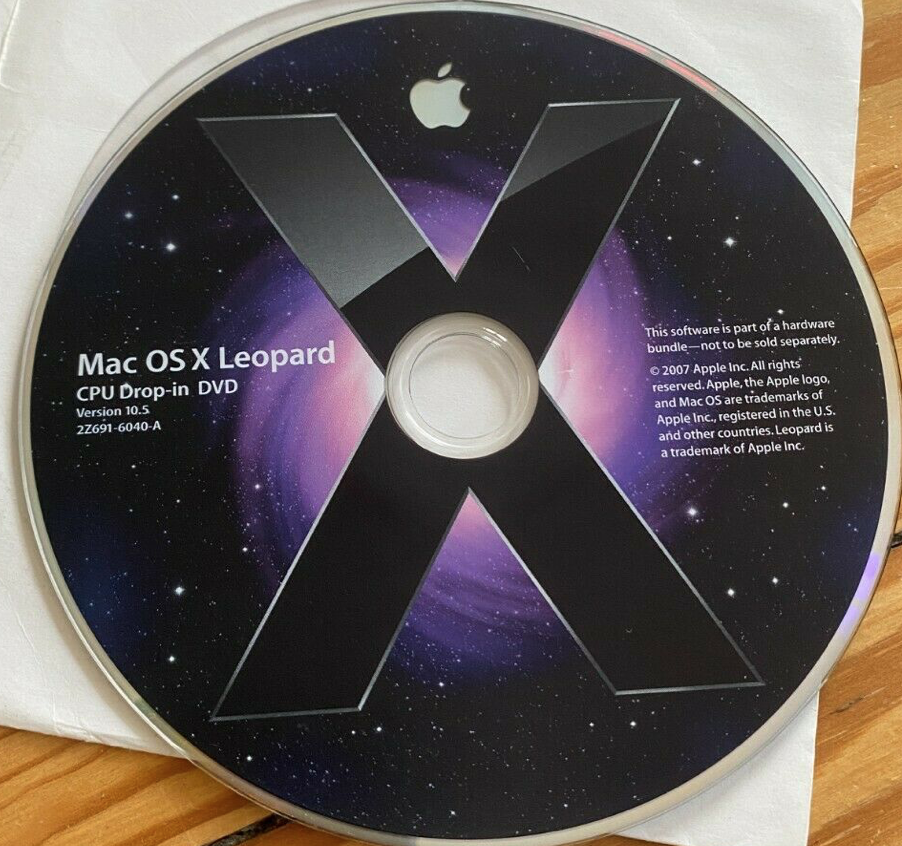 B Eine retail-Version von MacOS Leopard, Snow Leopard oder Lion besorgen (bei ebay gelegentlich zu kaufen); im u.a. Bild eine retail-Version; die original CD's haben ein typische graue Farbe und sind Gerät-gebunden (s.o.❗️), d.h. sie installieren das MacOS nur auf dem Mac, der auf den CD's ausgewiesen ist.